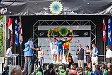 Rui Alberto Faria da Costa, ComIH[6] (born 5 October 1986) is a Portuguese professional road bicycle racer, who currently rides for UCI WorldTeam UAE Team Emirates.[7] He is best known for winning the 2013 UCI Road World Championships in Tuscany, Italy – the first Portuguese rider to do so –, three stages of the Tour de France in 2011 and 2013, and the 2012, 2013 and 2014 editions of the Tour de Suisse, becoming the first cyclist to win the event for three consecutive years.[8]