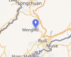Founded in 2002, Ruili Botanical Garden (Chinese: 瑞丽植物园) and Nanmaohu Park is a botanical garden in Ruili. Located 6 km from the city in Dehong Dai and Jingpo Autonomous Prefecture of Yunnan in the South-West of China near the Myanmar border. The park has more than 5,000 acres of well-preserved native vegetation, mainly monsoon evergreen broad-leaved forest, with more than 1,200 species of tropical and subtropical plants.[1]