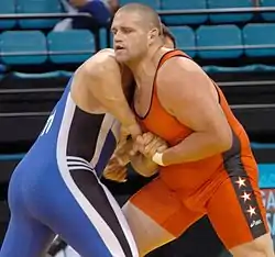 Rulon Ellis Gardner (born August 16, 1971) is an American retired Greco-Roman Olympic Gold Medalist wrestler. He competed at the 2000 and 2004 Olympics and won the gold medal in 2000, defeating Russia's three-time reigning gold medalist Aleksandr Karelin in the final.[2] Karelin was previously unbeaten for 13 years in international competition. Gardner won a bronze medal at the 2004 Games.[1]