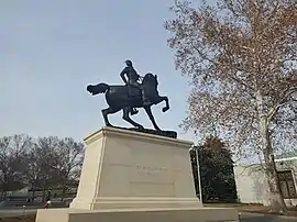 Rumors of War is a series of artworks by Kehinde Wiley examining equestrian portraiture in the canon of Western art history[1] culminating in a bronze monumental equestrian statue by the artist of an African-American young man (with dreadlocks in a ponytail, jeans ripped at the knees and Nike high-top sneakers), created in response to the statue of Confederate General J.E.B. Stuart in Richmond, Virginia in particular and similar statues of high-ranking Confederate Army officers, some of which still stand in the United States despite persistent calls for their removal.[2] Since the installation of Rumors of War in Richmond, all of the statues of the military leaders of the Confederacy have been removed from Monument Avenue where they had been since the first decade of the 20th century.