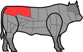 In the 20th century the English term rump steak was adopted, although with modified orthography romsteak or romsteck.[2] The spelling rumsteak is also attested.[3]