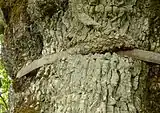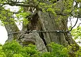 There was an iron band around the trunk to support it, thought to have been put there in the 19th century. It was partially replaced after being cut in 2005 by someone who said he wanted to "free" the tree.[7] In 2013, new interventions, such as wire supports, were installed.[8] A chain a little higher up prevents the trunk from splitting; the tree is now completely hollow. Climbing has been forbidden since 1998 and there is a fence around the tree; going closer than 5 metres (16 ft) is not permitted.[9]