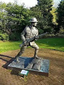 There is a memorial garden opposite the memorial cross. It has a statue of Thomas Alfred Jones, from Runcorn, who was awarded a Victoria Cross.