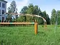Rundēnu School building is located on the territory of the manor, whose owner was Polish landowner Victor Shahno. Now on a place of Rundēnu Manor is only a park. In park of the manor the landowner has planted two malls of trees - on the one hand - lindens' mall, on another - fir-trees' mall. Lindens’ mall is kept and up to now. Fir-trees’ mall has been cut down for building needs during the Second World War. At this time inside the manor is located the school complex.[5] In 1938 construction of a new building of secondary school has begun. Future school director Arthur Burtnieks headed building construction. The school was built by hand, without technique help. In 1939 has opened the doors the spacious three-storey building of school.[5] Now the building of school is empty - in 2007 was last school release.