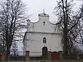 The church is located at the heart of Rundēni - opposite the bus stop, and was built without towers. There is a separately standing small bell-tower with two bells. An iron fencing on the stone basis fences the church and bell-tower. Local landowner Andrey Shahno constructed the church about 1820.[4] Inside the church is a crypt, in which was buried the family of landowner Victor Shahno - descendant of Andrei Shahno. Victor Shahno himself had emigrated abroad during the Second World War. Until 1946 the crypt was available for visitors, but later was closed to prevent looting.