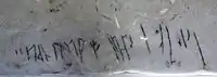 The first runic inscription was discovered in 1964 on a parapet on the top floor of the southern gallery, and the discovery was published by Elisabeth Svärdström in "Runorna i Hagia Sofia", Fornvännen 65 (1970), 247-49. The inscription is worn down so nowadays only -ftan, which is the Norse name Halfdan, is legible. The remainder of the inscription is considered to be illegible, but it is possible that it followed the common formula "NN carved these runes".[1]