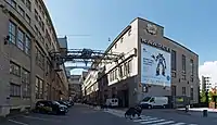 The Ruoholahti area was created in the 1910s by connecting several small islands with earth fill. Its purpose was to accommodate the above-mentioned port. In the 1940s there also developed a small industrial district whose most notable buildings were the cable factory (Kaapelitehdas) of Nokia (which later became a cultural centre when Nokia gave up cable manufacturing and moved on to telecommunications),[1] the headquarters of the Finnish government-owned alcohol enterprise Alko (transformed in 2002 into the Ruoholahti shopping centre), and the legendary Lepakko or Lepakkoluola (Bat cave), an old warehouse building used in 1967-1979 as emergency accommodation for homeless alcoholics and then, from 1979 to 1999 as an independent centre of youth culture from 1979 to 1999 (it was demolished to make way for an office building). In the 1960s the Länsiväylä highway (part of the Finnish national road 51) was built through Ruoholahti to connect Helsinki to southern Espoo via Lauttasaari.
