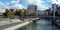 Ruoholahti (Finnish: [ˈruo̯hoˌlɑhti]; Swedish: Gräsviken; both meaning "Grass Bay") is a quarter in Helsinki, part of the Länsisatama neighbourhood and Kampinmalmi district.[1][2][3][4] It is located in the southwestern part of the central city area of Helsinki, close to the Lauttasaari island, and it functions as the principal connection between the Helsinki city centre and the city of Espoo to the west. As of 2005 Ruoholahti is inhabited by approx. 3300 people.[5] The Länsisatama port is also situated in Ruoholahti.