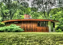 In 1946, Martha and Richard Wakefield of Columbus, Ohio, who had recently discovered the architecture of Frank Lloyd Wright, were inspired to visit the architect at his Arizona studio, Taliesin West. As they were leaving, Mr. Wright advised Mrs. Wakefield to "[g]o home, buy a Jeep and build a house for yourself. Then build a house for your next-door neighbor." She took his advice to heart, and in 1954 her husband, a builder, began working with Theodore Van Fossen, an architect and former student of Wright's,[1] to create what would become the nation's largest collection of homes based on Wright's principle of organic architecture.[2] In developing the neighborhood Wakefield had difficulties first finding the land, and securing bank loans due to the non-traditional designs.