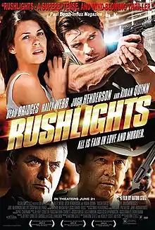 Rushlights is a 2013 American independent neo-noir thriller film written and directed by Antoni Stutz and starring Beau Bridges, Haley Webb, Josh Henderson and Aidan Quinn.[1][2][3] Rushlights was included in the official selections of the Montreal International Film Festival, the Shanghai International Film Festival, the Dallas International Film Festival as well as the Newport Beach Film Festival. An extended directors cut was released in 2016.[4][5][6][7][8]