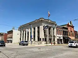 Rushville Commercial Historic District is a national historic district located at Rushville, Rush County, Indiana. The district encompasses 54 contributing buildings in the central business district of Rushville. The district developed between about 1847 and 1940 and includes notable examples of Greek Revival, Italianate, Romanesque Revival, Classical Revival, Collegiate Gothic, Commercial style, and Art Deco style architecture. Located in the district are the separately listed Durbin Hotel, Melodeon Hall, and Rush County Courthouse. Other notable buildings include the former Methodist Episcopal Church (1847-1850), Church of Christ / Boys' and Girls' Club (1850-1853), Beher-King Block (1883), Presbyterian Church (1892-1893), Rushville National Bank (1911), Phoenix Lodge (1913–1915), Rushville Public Library (c. 1930), and former Castle Theatre (1939).[2]
