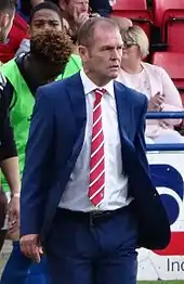 He returned to the professional game when he joined Fourth Division club Northampton Town for a £15,000 fee on 30 June 1986.[1] He later played for Hull City, Preston North End and Scunthorpe United.[5] He played the majority of his career at Scunthorpe, where he was signed by Brian Laws in 1997.[6] He eventually became player-assistant manager to Laws in 1999 after the win at Wembley Stadium in the play-off final against Leyton Orient.[7]