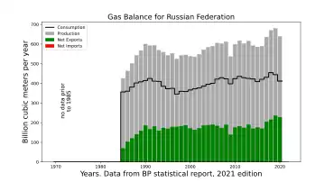 Russia supplies a significant volume of fossil fuels to other European countries. In 2021 it was the largest exporter of oil and natural gas to the European Union,[1] and 40% of gas consumed in the EU came from Russia.[2]