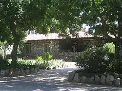 A satellite of Russian Village is the present-day Cask 'n Cleaver[11] restaurant in Cucamonga, originally an orchard house[12] designed and built by Stys. Adjacent and north of the Cask 'n Cleaver buildings, a low-lying stone wall and seven redwood bungalows,[13][14] built by Stys, and made from lumber recovered from wreckage in the Long Beach earthquake were demolished for the new Los Amigos city park,[15][16] reusing lumber for a shade structure, and river rocks to ornate some structures. Rancho Cucamonga Redevelopment Agency was awarded a Proposition 84 grant in 2011, acquired the property, construction began in March 2016, and opened in Spring 2017.[17][18][19]