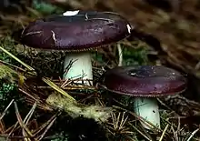 Russula caerulea, commonly known as the humpback brittlegill, is a member of the genus Russula, whose members are also known as brittlegills. It is a dark vinaceous or purple-colored edible mushroom, and grows with coniferous trees in late summer and autumn. It is found in Europe and North America.