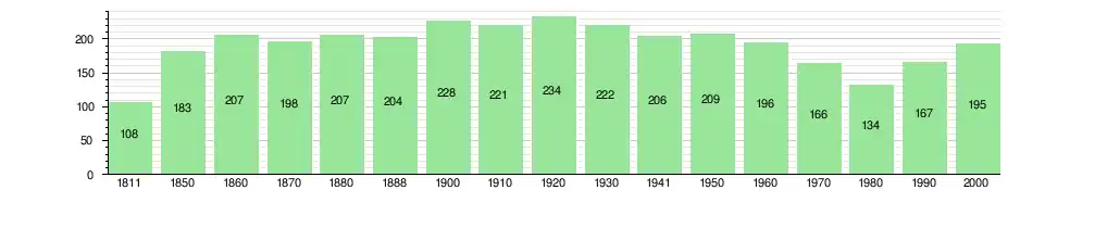 The age distribution, as of 2000, in Russy is; 19 children or 9.7% of the population are between 0 and 9 years old and 33 teenagers or 16.9% are between 10 and 19. Of the adult population, 26 people or 13.3% of the population are between 20 and 29 years old. 26 people or 13.3% are between 30 and 39, 33 people or 16.9% are between 40 and 49, and 16 people or 8.2% are between 50 and 59. The senior population distribution is 13 people or 6.7% of the population are between 60 and 69 years old, 13 people or 6.7% are between 70 and 79, there are 16 people or 8.2% who are between 80 and 89.[8]