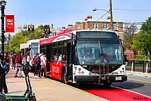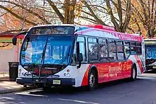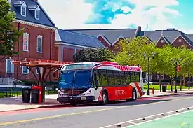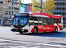 First Transit expanded their bus service to the Newark Campus beginning September 1, 2014; to Camden Campus since September 1, 2019.[11] The new Rutgers-logo fleet of buses utilize the NextBus system and real-time status is available via the official Rutgers app. In 2018, Rutgers replaced the NextBus system with TransLoc.[12]