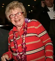 In 2008 Westheimer's name was added to the Bronx Walk of Fame (as the first “Honorary Bronxite,” chosen for contributions to the life of the borough).[152] In 2010 she was made a member of the Women in Technology International Hall of Fame.[153] In 2017 she was inducted into the German-American Hall of Fame.[154] In 2019, she was inducted into the Radio Hall of Fame.[85]