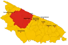 After the dominion of the Carafa, the liberal uprisings also touched Ruvo but failed miserably as in the rest of the South.[15] However, in the early nineteenth century Giovanni Jatta was particularly distinguished, who was elected by the ruvestines as the city's lawyer, won the case against the Carafa family, obtaining lavish compensation and was among the protagonists of those archaeological excavations that brought to light the numerous finds of Peucet, Greek and Roman period preserved in the Jatta museum.[16] In the period prior to the unification of Italy, Ruvo was the seat of a Carbonara sale called "Perfetta Fedeltà"[17] which included the patriot and lawyer Francesco Rubini who was responsible for organizing the Risorgimento uprisings also in Ruvo. In the post-unification period Ruvo, albeit slowly, knew the signs of progress also thanks to the ruvestine deputy and agronomist Antonio Jatta, who pointed out to the government the numerous problems of Apulia and the province of Bari. Fundamental milestones of progress were marked in 1905 from the arrival of electric lighting and in 1914 with the diffusion of public water. During the First World War 367 ruvestines fell on the battle fronts[18] while in the fascist twenty years other works of public benefit were carried out such as the reclamation of the quagmire and the creation of the sewer in 1938[19] of which still today we can distinguish some Fascist manhole covers with the Fascist coat of arms alongside the coat of arms of the municipality of Ruvo di Puglia. After the Second World War Ruvo distinguished itself in the cultural sphere, above all thanks to the works of the painter Domenico Cantatore, but also in the economic sphere with the flourishing vines and olive groves.