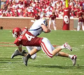 Ryan Reynolds (born September 20, 1986) is a former linebacker for the Oklahoma Sooners. He was a four-year standout in football and judo in high school, both at Lake Havasu High School in Arizona and at Bishop Gorman High School in Summerlin, Nevada, where he was recognized nationally.[1]