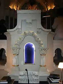In 1922 a private School Association opened a Jewish school in the front building. The synagogue served the congregants in the Prenzlauer Berg neighbourhood as place of worship and for their rites of passage such as weddings and Bar Mitzvah ceremonies as well as Bat Mitzvah ceremonies starting as of the mid-1920s.[10] On Yom Kippur ceremonies the prayer of Kol Nidrei was skipped, as was typical for Neuer Ritus style. However, this was protested in the 1920s by a group of congregants, the so-called Kol Nidrei demonstrators, who ostentatiously left the main prayer hall shortly before the service on the eve of Yom Kippur and then formed a minyan in the hallway, praying Kol Nidrei there, before returning again to the main hall.[11]