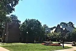 Ryland Hall is a historic academic building located on the University of Richmond campus in Richmond, Virginia. The building was originally built for Richmond College, which together with Westhampton College became the University of Richmond in 1920. It was designed by architect Ralph Adams Cram and built in 1913 in the Collegiate Gothic style. The brick, stone, and concrete building consists of two parallel wings, Robert Ryland and Charles Ryland halls, set apart by a connecting loggia. The three- to four-story building features leaded glass windows with Gothic tracery, decorative concrete sculptural elements, and a gable roof with slate shingles.[3]