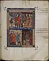 The Rylands Haggadah is an illuminated Sephardi Passover Haggadah written and illuminated in Catalonia, Spain in the mid-14th century. It is generally regarded as one of the finest preserved and most ornate Haggadot in the world, and as an example of the "cross-fertilisation between Jewish and non-Jewish artists within the medium of manuscript illumination."[1]