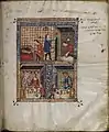 - The Rylands Haggadah: The Plagues of Wild Beasts and of Cattle Disease (right); The Plagues of Boils and of Hail (left)[11]