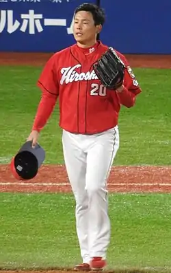 Ryoji Kuribayashi (栗林 良吏, Kuribayashi Ryōji, born July 9, 1996 in Aisai, Aichi, Japan) is a professional Japanese baseball pitcher for the Hiroshima Toyo Carp of Nippon Professional Baseball (NPB).[1][2]
