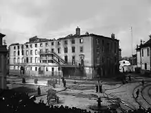 But, on 11 April 1908, there was a fire, destroying the theatre interior, and a new structure was built on its former site.[1] Before its destruction, the theatre had a markedly horseshoe-shaped plan. Its rounded ceiling was painted by Joaquim Rafael and had in 1856 received a new painting by Paulo Pizzi.[1] The building included four rows of booths, with the booth for the royal family located centrally on the second floor.[1] The large atrium, and the corridors large supported by access from large staircases.[1] Along the second floor was a magnificent concert hall.[1] Generally, the theatre had excellent acoustics.[1] The stage wall was painted by Sequeira, but was later replaced in 1825 by paintings contracted to the Spaniard João Rodrigues, and later, Palucci. Until 1838, the theatre was lit by tallow candles, and later by similar candles lit by oil.[1]