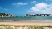 The parish has one of the most beautiful beaches in the country, a bay, shaped like a scallop, with calm waters and fine white sand. São Martinho do Porto was even considered the best beach to go with the family in the guide of 2015 beaches of eDreams. According to the online booking site for travel and hotels, the "natural bay of clear and calm water and surrounded by diverse shops and restaurants offers the ideal conditions for a relaxed family day". In addition, the company, based in Barcelona, says that "it is perfect for the baths of children, while adults relax in the sand or have a drink on a terrace overlooking the sea".[4]