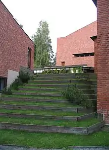 The Säynätsalo Town Hall (Finnish: Säynätsalon kunnantalo) is a multifunction building complex, consisting of two main buildings organised around a centralised courtyard; a U-shaped council chamber and town hall with administrative offices and a community library with and flats.[1] The Town Hall was designed by Finnish architect Alvar Aalto for the municipality of Säynätsalo (merged with the municipality of Jyväskylä in 1993) in Central Finland. Aalto received the commission after a design contest in 1949, and the building was completed in December 1951.