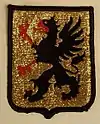 The coat of the arms of the Södermanland Regiment (P 10/Fo 43) 1977–1994, the Södermanland Brigade (MekB 10) 1994–2000 and Södermanland Regiment (P 10) 2000–2004. Blazon: "Or, the provincial badge of Södermanland, a griffin segreant, sable, armed and langued gules. The shield surmounted two arms in fess, embowed and vambraced, the hands holding swords in saltire, or".[8] The coat of arms of the Södermanland Regiment (P 10/Fo 43) 1994–2000 and the Södermanland Group (Södermanlandsgruppen) since 2000. Blazon: "Or, the provincial badge of Södermanland, a griffin segreant sable, armed and langued gules. The shield surmounted two swords in saltire or".[8]