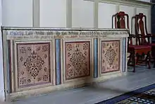 Painted pew in Gärdslösa Church: the village name is written Syderby on the left.