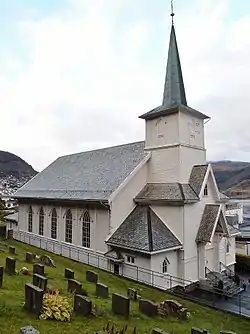 Sør-Vågsøy Church (Norwegian: Sør-Vågsøy kyrkje) is a parish church of the Church of Norway in Kinn Municipality in Vestland county, Norway. It is located in the town of Måløy on the southeastern coast of the island of Vågsøy. It is the church for the Sør-Vågsøy parish which is part of the Nordfjord prosti (deanery) in the Diocese of Bjørgvin. The white, wooden church was built in a long church style in 1907 by the architect Lars Sølvberg. The church seats about 600 people.[1][2]