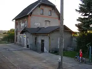 Sławki railway station is a railway station serving the village of Sławki, in the Pomeranian Voivodeship, Poland. The station is located on the Nowa Wieś Wielka–Gdynia Port railway. The train services are operated by SKM Tricity.