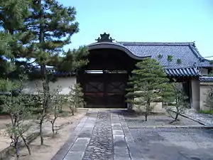 Sōken-in (総見院) is a sub-temple of Daitoku-ji, Kyoto, Japan. It was founded by Toyotomi Hideyoshi in 1582 as the mortuary temple of Oda Nobunaga. Hideyoshi granted the temple three hundred koku and staged his celebrated Daitoku-ji tea gathering on its grounds in 1585. During the early years of the Meiji period its precinct was demolished and its treasures relocated; Sōken-in was revived in 1926.[1] The seated wooden statue of Oda Nobunaga of 1583, lacquered, with inlaid eyes and an inscription on the base, an Important Cultural Property, was returned in 1961.[1][2] Nobunaga's funeral and Hideyoshi's foundation of the sub-temple 'with the very best wood available, a remarkable thing to see' was recounted by the Portuguese missionary Luís Fróis in his contemporary História de Japam.[3]