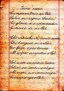 S'hymnu sardu nationale ("The Sardinian National Anthem"), also known as Cunservet Deus su Re ("God Save the King"), was the national anthem of the Kingdom of Sardinia under Savoyard rule.[3]