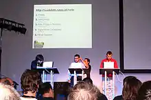 Since 2008,[3] in the four weeks before the event, participants had to solve about one challenge per-week to qualify for the quiz show. The challenges included image enigmas, treasure hunts, code golf contests, among others. They all shared a reasonably high level of difficulty and required a fair knowledge of tech-related culture and motivation. Qualified participants then went on stage on Friday night for a few rounds of questions, mostly about science, technology, and geek trivia.[4]