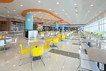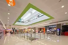 SM City Legazpi is a three-level shopping mall with green architecture features.[15][5] The floor plan follows a z-shaped layout with provisions for natural daylight.[2][16] Distinct mall features include a glass-walled Food Hall with outdoor balcony and an SM Prestige Lounge, both with panoramic views of Mt. Mayon.[2][17] The mall also has a 922-slot three-level parking area with roof deck parking and six digital cinemas with 109 comfort seats per theater.[18][19][20][21] Additional facilities include a customer service hub, PWD access ramps, and breastfeeding station.[5][15] It is a typhoon-resilient structure, according to Annie Garcia, President of SM Supermalls.[9]