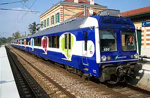 ![]() A refurbished Z6400 EMU in the "Grande Ceinture Ouest" version at Saint-Germain-en-Laye | |
