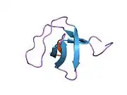 Alpha II-spectrin, also known as Spectrin alpha chain, brain is a protein that in humans is encoded by the SPTAN1 gene.[5][6][7] Alpha II-spectrin is expressed in a variety of tissues, and is highly expressed in cardiac muscle at Z-disc structures, costameres and at the sarcolemma membrane. Mutations in alpha II-spectrin have been associated with early infantile epileptic encephalopathy-5, and alpha II-spectrin may be a valuable biomarker for Guillain–Barré syndrome and infantile congenital heart disease.