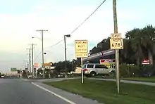 SR 678 serves as a connector between US 41 Business and US 41. State Road 678 has its western terminus at an interchange with US 41 Business.[2] At this point, Bearss Avenue, designated as County Road 678, becomes State Road 678. Immediately the roadway widens to 6 lanes as it begins its eastern route.[3] The state road along its entire stretch goes through a commercial district with numerous strip malls.[3] After .3 miles from its western terminus, State Road 678 has an interchange with Interstate 275, providing access to both the interstate's northbound and southbound lanes.[4] After the interchange, the number of lanes on the road thins down to 4.[5] State Road 678 continues through the shopping district before each its eastern terminus with US 41 after .2 miles. At its eastern terminus, East Bearss Avenue loses its state road signage and returns to being County Road 678.[6]