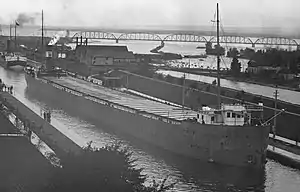 She was launched as hull #330 on April 9, 1904.[1] At the time of her launch her nickname was "Yellow Kid".[2] She was powered by a quadruple expansion steam engine attached to a single fixed pitch propeller and fueled by two coal-fired scotch marine boilers. At the time of her launch Augustus B. Wolvin was the longest vessel operating on the Great Lakes (hence the unofficial title "Queen of the Lakes"), she was also the first vessel that had telescoping steel hatch covers which replaced the old wooden hatch covers.[3]