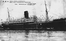 The SS Mongolia was a steam turbine-driven twin-screw passenger-and-cargo ocean liner launched in 1922 for the Peninsular and Oriental Steam Navigation Company (P&O) for service from the United Kingdom to Australia. Later in P&O service she sailed for New Zealand, and in 1938 she was chartered to a P&O subsidiary, the New Zealand Shipping Company, as SS Rimutaka.