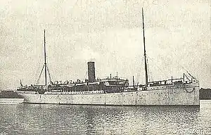 Originally named SS Singapore, she was 430 feet long and 49 feet 4 inches in beam, with a three-cylinder triple expansion steam engine and a top speed of 14.5 knots.[1] She had a capacity of 90 first-class and 62 second-class passengers and also carried cargo.