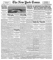 Front page of the New York Times, April 23, 1925, detailing the sinking of SS Raifuku Maru