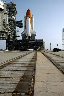 Atlantis was rolled out from the Orbiter Processing Facility to the Vehicle Assembly Building (VAB) on 24 July 2006. It was lowered onto the mobile launcher platform on 26 July and rolled out to Pad 39B in the early morning hours of 2 August. The rollout was scheduled for 31 July, but a storm in the vicinity of the Kennedy Space Center resulted in a delay of two days from fears of the orbiter being hit by lightning, which could cause immeasurable damage.