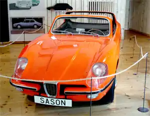 The Saab Catherina is a 1964 prototype automobile, commissioned by the Swedish automaker Saab, designed by Sixten Sason and made at the workshops of the Aktiebolaget Svenska Järnvägsverkstäderna (ASJ - the Swedish Railroad Works) in Katrineholm, Sweden (hence the name). It is a red, two-seat sports car with a targa top.[1][2]
