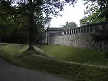 Only about 200 m north of the porta decumana (back gate), the limes runs by in a west-easterly direction.[8] Part of the border defense (ditch, bank and palisade) has been reconstructed here.